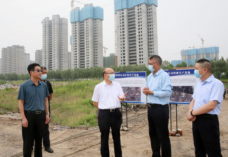 丁銳一行先后到海州灣公司礦鹵復產(chǎn)、翔立市政工程、海州灣工業(yè)園、鈣液生產(chǎn)區(qū)域和美多利科技創(chuàng)業(yè)園等現(xiàn)場,詳細了解鹽業(yè)生產(chǎn)、項目建設(shè)、土地開發(fā)、安全管理等情況,并為奮戰(zhàn)在一線的員工送去防暑降溫物品。
