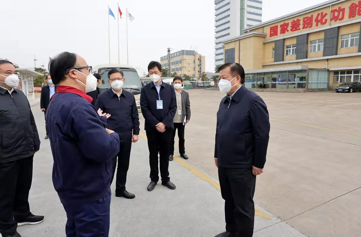 3月16下午,市委書記方偉到集團(tuán)調(diào)研,并在氨綸公司檢查疫情防控工作。市領(lǐng)導(dǎo)林小異、商振江陪同,集團(tuán)公司黨委書記、董事長(zhǎng)楊龍參加調(diào)研。