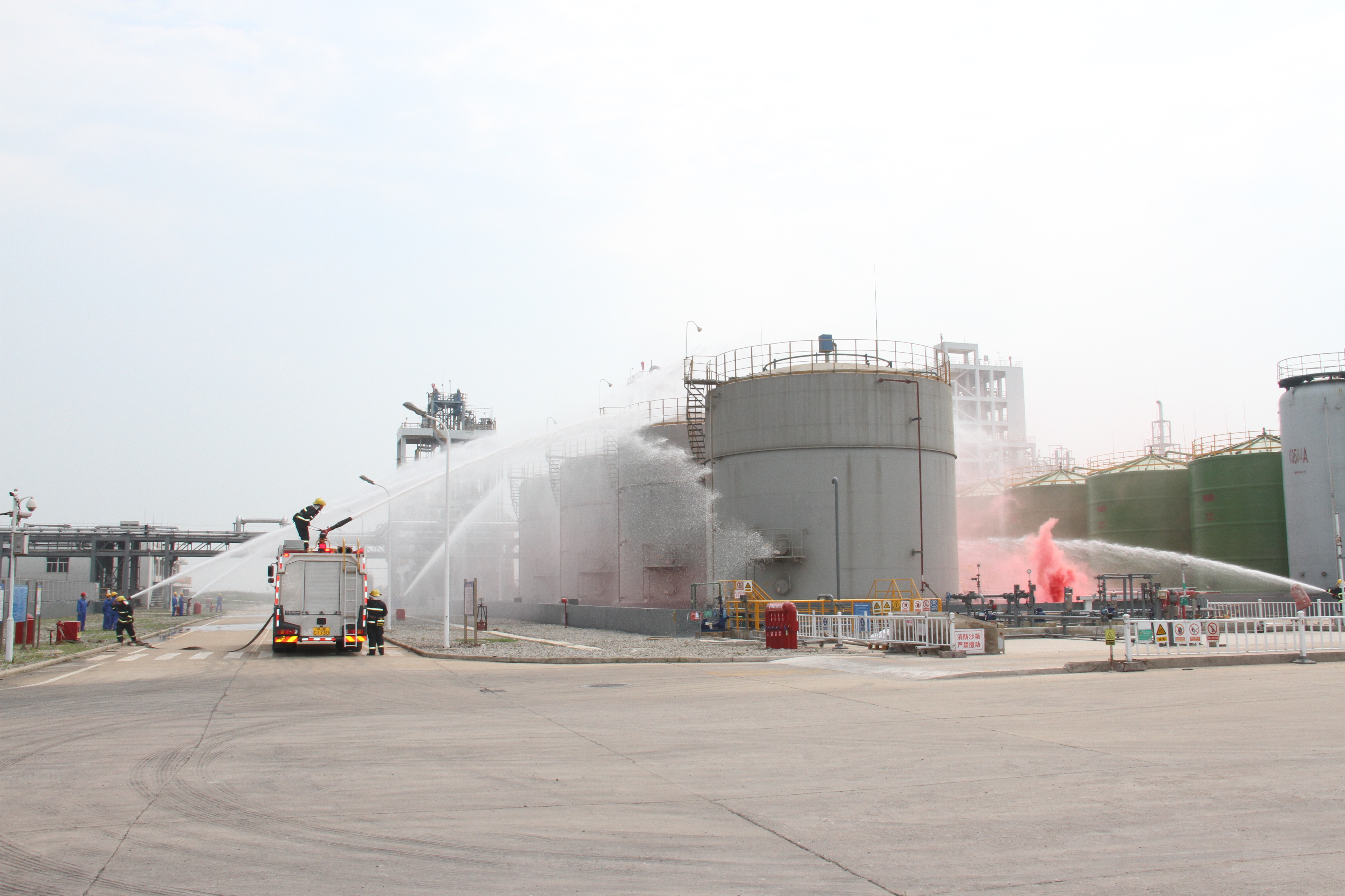 為進(jìn)一步完善事故應(yīng)急救援體系,強(qiáng)化突發(fā)事件應(yīng)急處置能力,6月22日上午,市國(guó)資委和市工投集團(tuán)在利?;す韭?lián)合舉行危險(xiǎn)化學(xué)品罐區(qū)泄漏事故應(yīng)急演練活動(dòng)。市國(guó)資委黨委委員王懷東及市屬各大國(guó)企集團(tuán)公司、連云區(qū)應(yīng)急管理局、連云開(kāi)發(fā)區(qū)管委會(huì)等相關(guān)領(lǐng)導(dǎo)蒞臨指導(dǎo)。集團(tuán)公司副總經(jīng)理朱天松,各權(quán)屬單位負(fù)責(zé)人、安全管理人員到場(chǎng)觀摩。