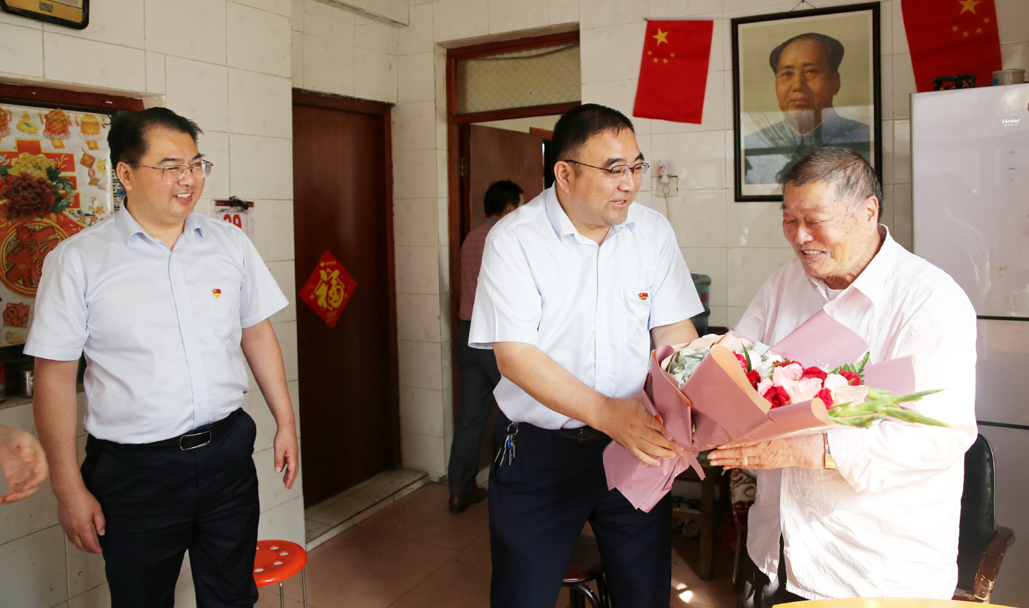 集團公司董事長、黨委書記楊龍,總經(jīng)理胡建明、黨委副書記戴鴻鳴、紀委書記汪群等領(lǐng)導分組走訪慰問部分建國前參加工作的老黨員、老干部,為他們送去慰問金和鮮花,同慶新中國七十周歲華誕。