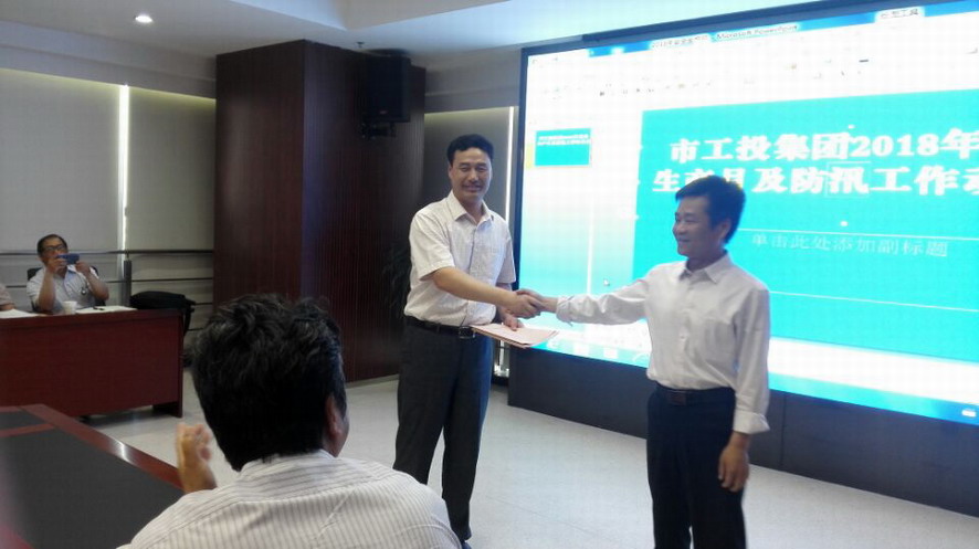 會(huì)上通報(bào)了2018年夏季氣候趨勢(shì)預(yù)測(cè)情況,同時(shí)傳達(dá)全國(guó)?;钒踩a(chǎn)視頻會(huì)議、“5.12”上海賽科燃爆事故概況。代表單位灌西、徐圩、利海公司三家會(huì)上遞交了防汛責(zé)任狀。