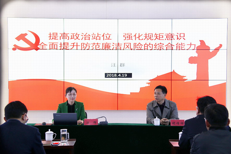 為進(jìn)一步深入學(xué)習(xí)貫徹黨的十九大會(huì)議精神,強(qiáng)化正風(fēng)肅紀(jì),不斷鞏固拓展落實(shí)中央八項(xiàng)規(guī)定精神成果,419日下午,集團(tuán)公司紀(jì)委書記汪群在資產(chǎn)管理公司上了一堂《提高政治站位,強(qiáng)化規(guī)矩意識(shí),全面提升防范廉潔風(fēng)險(xiǎn)的綜合能力》廉政黨課,該公司50多名干部職工聆聽了黨課。