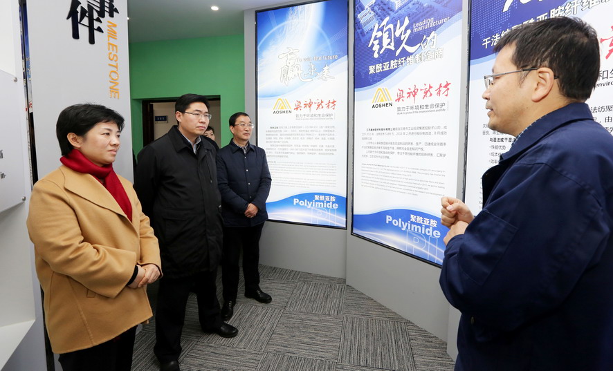 萬(wàn)聞華一行先后參觀了奧神新材料公司展廳和生產(chǎn)車間,聽(tīng)取了該公司目前的發(fā)展情況匯報(bào),詳細(xì)了解高性能纖維產(chǎn)品的相關(guān)性能和發(fā)展前景,對(duì)該公司在纖維行業(yè)等方面取得的成績(jī)給予充分肯定。萬(wàn)聞華希望奧神新材料公司要進(jìn)一步突出“高、新、優(yōu)”特色,不斷推動(dòng)產(chǎn)業(yè)高端化、規(guī)?;?、集聚化發(fā)展,為推動(dòng)全市纖維新材料產(chǎn)業(yè)發(fā)展做出新的貢獻(xiàn)。