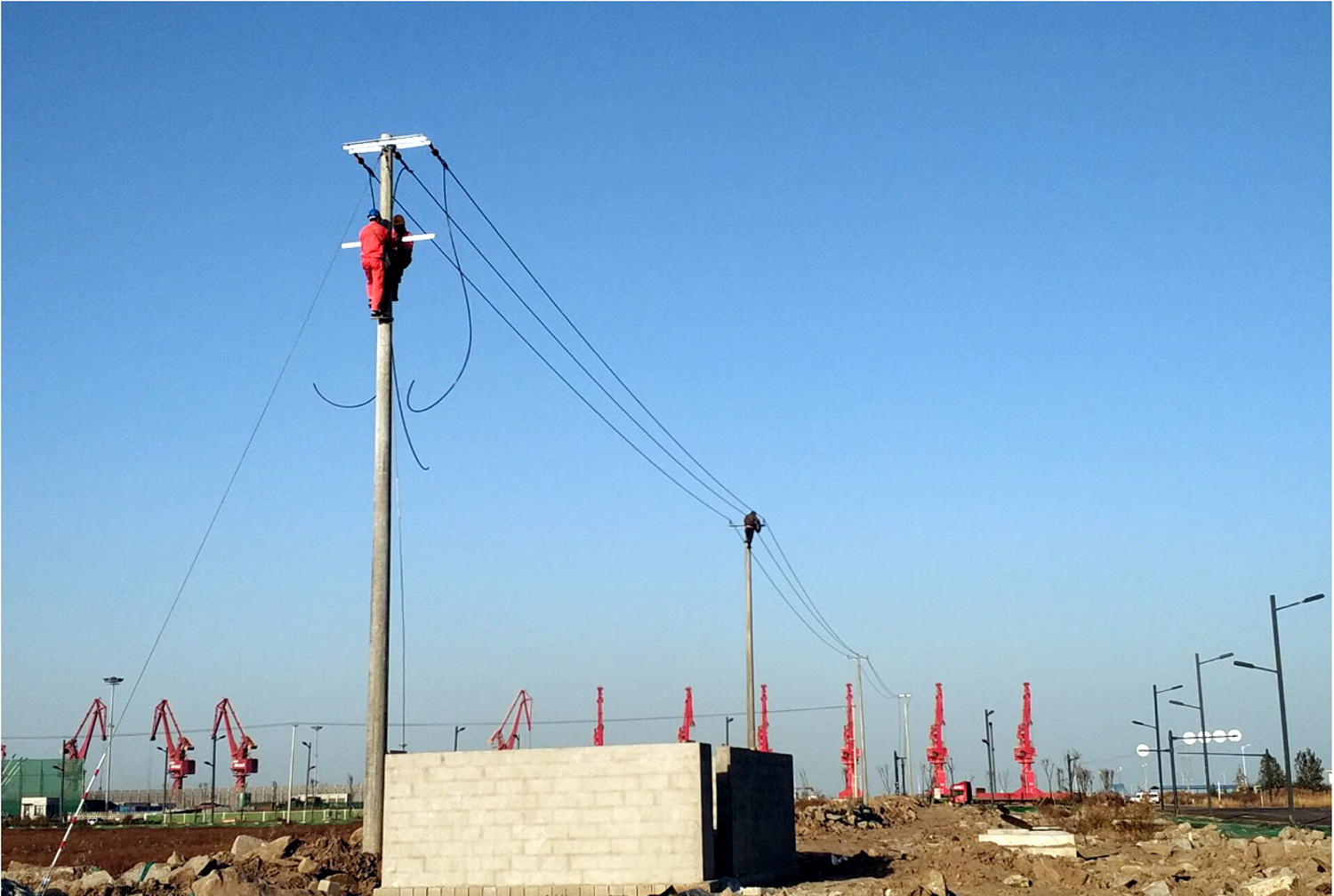 “他們這么年輕,沒(méi)有經(jīng)驗(yàn),能爬這么高的電桿么?”臺(tái)南供電所負(fù)責(zé)人趙勇對(duì)他們爬桿作業(yè)倍感擔(dān)心。在15米高的電桿前,青年突擊隊(duì)員們二話不說(shuō),穿上腳扣,戴上保護(hù)手套,系好安全帶,動(dòng)作干脆利落,三下五除二就爬到了桿頂,在隊(duì)長(zhǎng)孫迎照的指揮下開始了施工作業(yè),在規(guī)定時(shí)間內(nèi)圓滿完成了工作任務(wù),徹底掃除了趙所長(zhǎng)之前所有的擔(dān)心?!拔覀兡苄?,我們可以!”逐漸成為青年突擊隊(duì)響亮的口號(hào)。在各個(gè)施工現(xiàn)場(chǎng),總能看見(jiàn)這支青年突擊隊(duì)隊(duì)員們穿梭于工地的各個(gè)角落,在各種角鐵鋼架上進(jìn)行復(fù)雜的操作,在高高的電桿上檢修故障??偰茉谑┕がF(xiàn)場(chǎng)的每一個(gè)角落看見(jiàn)青年突擊隊(duì)員進(jìn)行現(xiàn)場(chǎng)施工、組織協(xié)調(diào)、質(zhì)量控制、質(zhì)量驗(yàn)收等各項(xiàng)工作時(shí)的身影。他們兢兢業(yè)業(yè)、埋頭苦干,確保了項(xiàng)目計(jì)劃的順利實(shí)施,保障了項(xiàng)目工期的順利推進(jìn)。