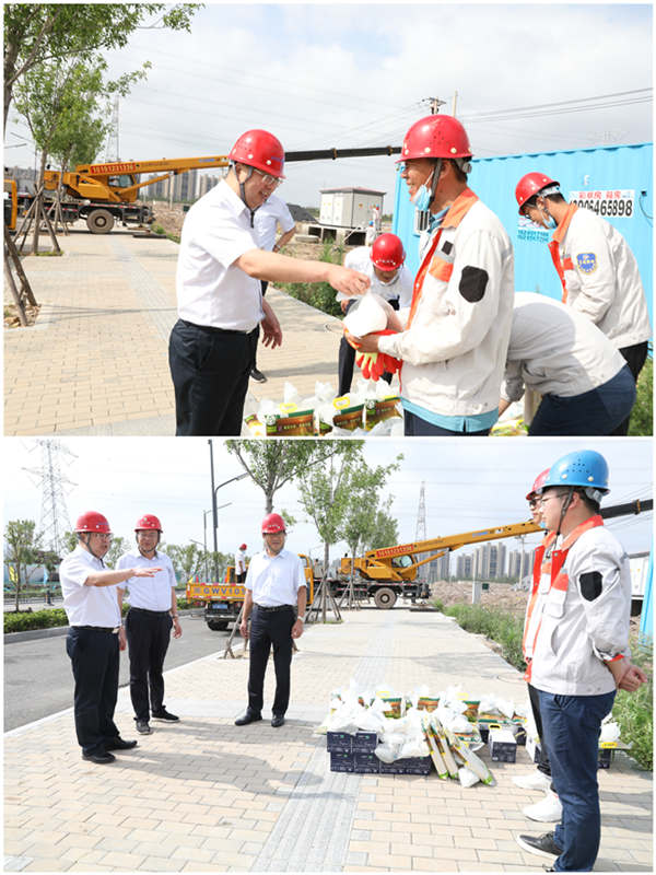 7月28日上午,集團公司黨委副書記戴鴻鳴、工會主席劉承志一行,深入公司施工一線走訪慰問職工,把綠豆、牛奶等防暑降溫用品送到他們手中,在炎炎夏日,為一線職工送去集團公司的深切關(guān)懷。