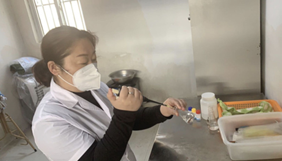“疫情期間,每天都要隨機(jī)選取攤位進(jìn)行取樣,對蔬菜、水果、生鮮肉類、干制品等的農(nóng)藥殘留、非法添加物、濫用添加劑等進(jìn)行檢測,檢測項(xiàng)目涵蓋常見的食用農(nóng)產(chǎn)品風(fēng)險(xiǎn)項(xiàng)目,俗話說民以食為天,所以一定把好群眾的‘入口’關(guān),讓居民吃得放心,這樣我的工作才有價(jià)值。”疫情防控命令下達(dá)后,陸麗麗同志被巨龍農(nóng)貿(mào)市場服務(wù)中心安排負(fù)責(zé)市場內(nèi)的農(nóng)產(chǎn)品檢測工作,她放棄春節(jié)節(jié)假日休息,即刻上陣,每日對市場攤位農(nóng)產(chǎn)品進(jìn)行抽檢,全力把好入市食用農(nóng)產(chǎn)品質(zhì)量關(guān),維護(hù)銷售環(huán)節(jié)食用農(nóng)產(chǎn)品消費(fèi)安全。