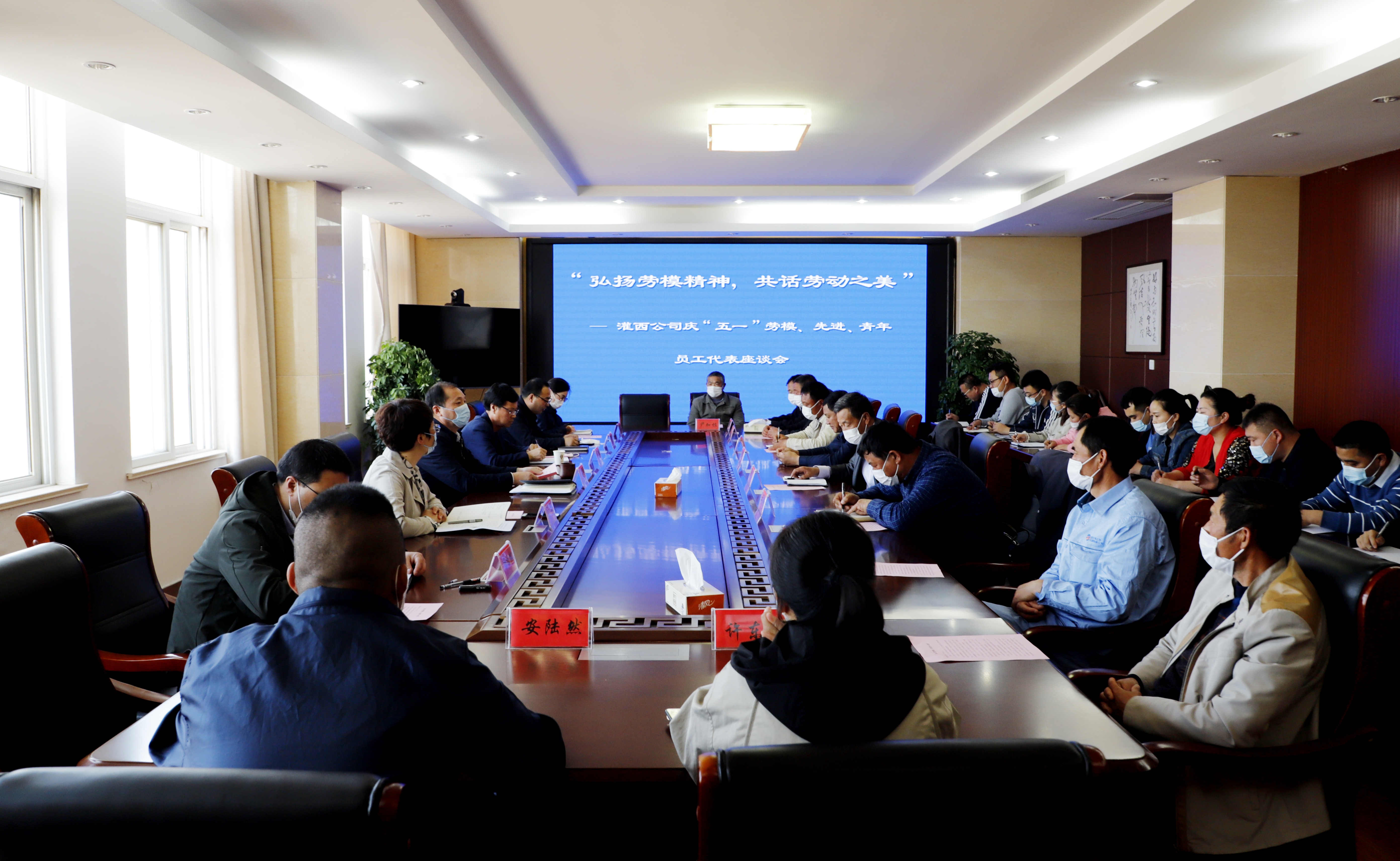 為慶祝“五一”國際勞動節(jié),進(jìn)一步弘揚勞模精神和勞動精神,為公司的高質(zhì)量發(fā)展提供精神動力。4月29日下午,灌西公司在機(jī)關(guān)三樓會議室召開慶“五一”勞模座談會。黨委書記、董事長、總經(jīng)理李國文,常務(wù)副總經(jīng)理古浩光,黨委副書記、紀(jì)委書記、工會主席王宏以及來自公司各條戰(zhàn)線的勞動模范、先進(jìn)、青年員工代表40余人參加座談會。