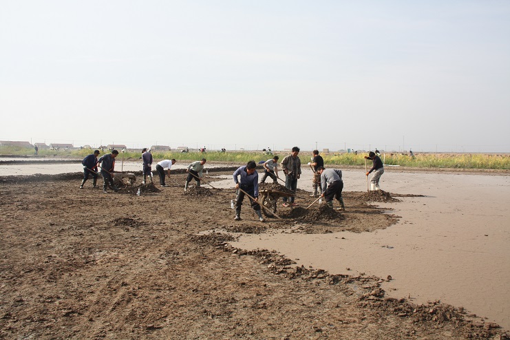 據(jù)了解,《淮鹽制作技藝》已于2015年成功申報國家級非物質(zhì)文化遺產(chǎn)保護(hù)項目并審核通過。此次央視攝制組主要圍繞淮鹽發(fā)展歷史來我公司拍攝平面灘、對口灘等制鹽工藝及過程,為制作淮鹽文化宣傳片收集影像資料。埒南制鹽分公司黨支部在接到通知后,高度重視此項工作,迅速組織黨員職工及有經(jīng)驗的班組長投入到灘地改造工作中來,為確保此次拍攝工作順利進(jìn)行奠定了扎實的基礎(chǔ)?;顒蝇F(xiàn)場,大家按照事先劃分好的區(qū)域分工協(xié)作,互相配合,有鏟泥的,有利用獨輪車推泥的,不一會功夫就完成了四條池埝的制作。據(jù)“淮鹽文化傳承人”韓井軍介紹,下一步在平面灘制作完成后,再對格塊進(jìn)行晾曬、“三嗆四壓”等工序后才能投入使用。(封楊)