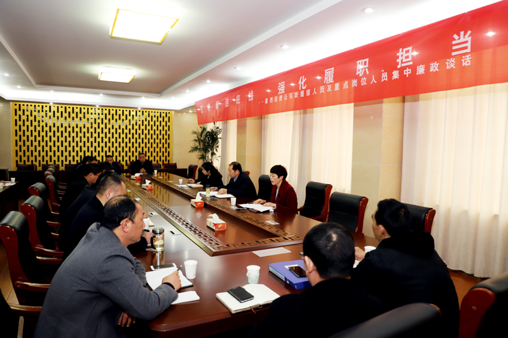 為進(jìn)一步推進(jìn)公司黨風(fēng)廉政建設(shè),提高黨員干部廉潔自律意識(shí),4月11日上午,灌西公司組織開展“堅(jiān)守廉潔底線強(qiáng)化履職擔(dān)當(dāng)”2019年新提拔人員及重點(diǎn)崗位人員集體廉政談話,黨委書記、董事長(zhǎng)、總經(jīng)理李國(guó)文,黨委副書記、紀(jì)委書記、工會(huì)主席王宏,新提拔人員以及重點(diǎn)崗位人員參加了廉政談話。