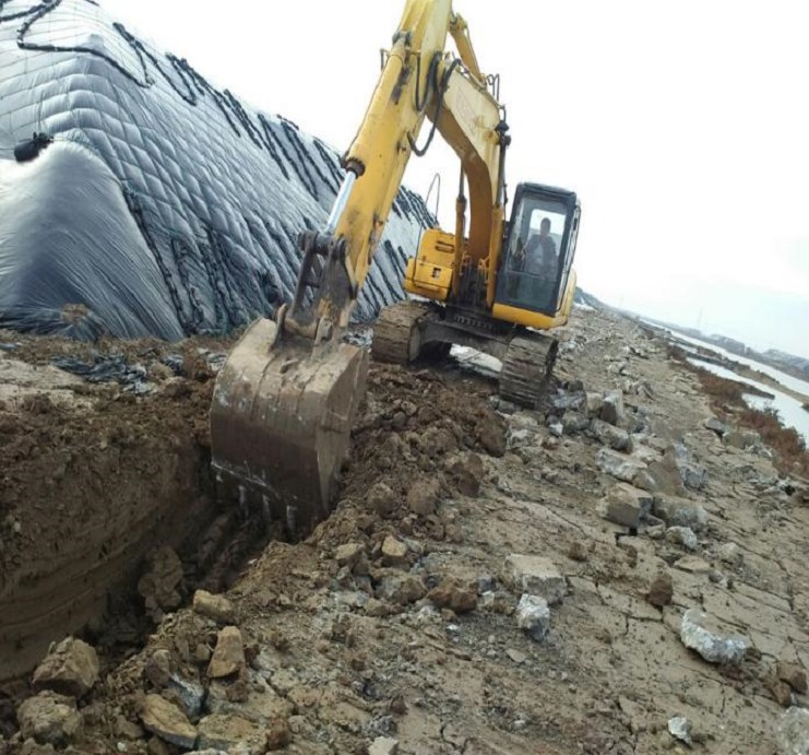 (圖為施工現(xiàn)場(chǎng)挖掘機(jī)整理路基)