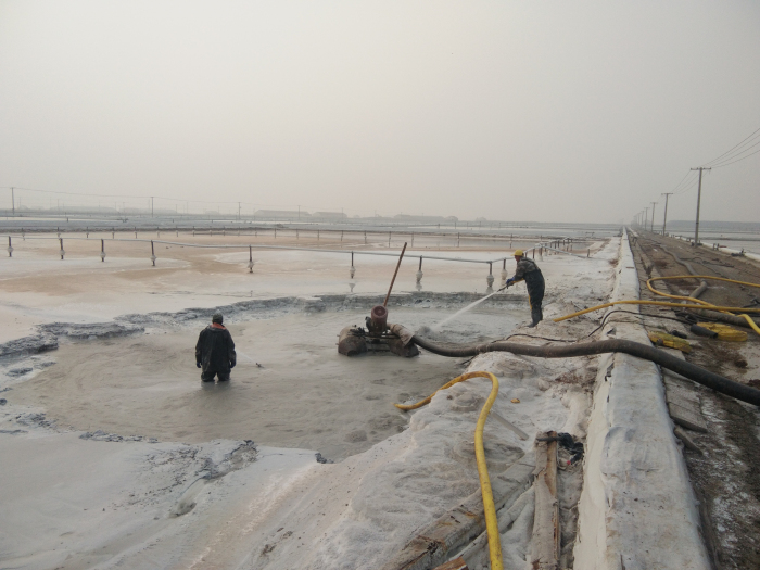 新河制鹽分公司開始進(jìn)行硫酸鈣清理工作