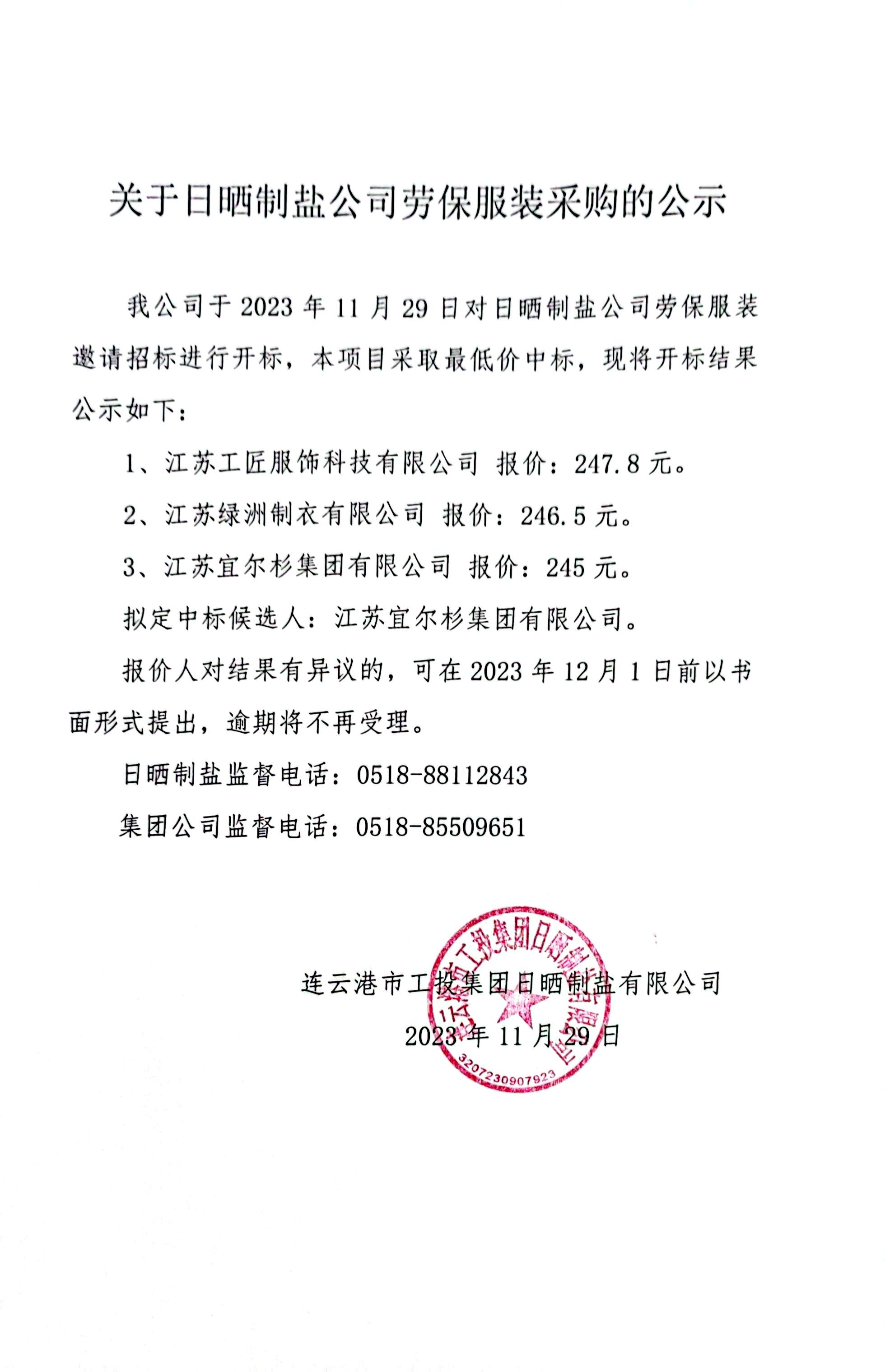關(guān)于日曬制鹽公司勞保服裝采購(gòu)的公示