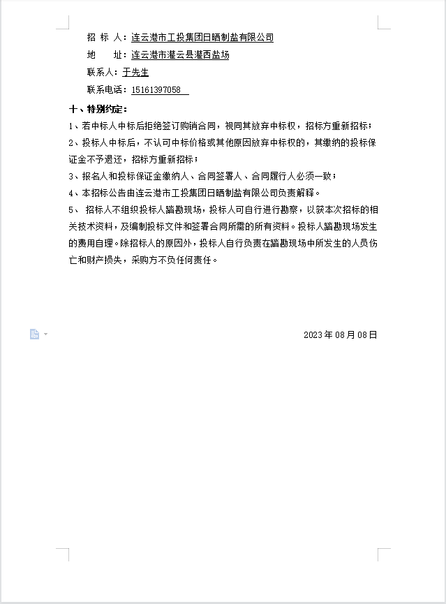 連云港市工投集團日曬制鹽有限公司安全板、分線樁招標(biāo)公告