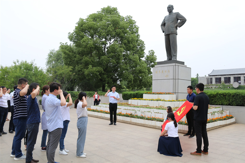 為慶祝建黨98周年,6月16日資產(chǎn)管理公司黨支部組織全體黨員赴淮安周恩來紀念館、故居及新四軍劉老莊連紀念園開展“不忘初心,牢記使命”主題紅色教育活動,深切緬懷一代偉人的豐功偉績,學(xué)習和弘揚老一輩無產(chǎn)階級革命家的革命情懷和崇高精神。引導(dǎo)公司黨員干部“悟初心、守初心、踐初心”,在新征程中勇?lián)率姑?、作出新貢獻。
