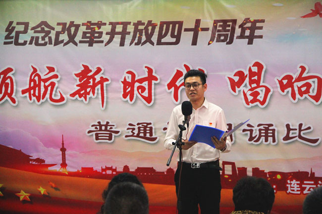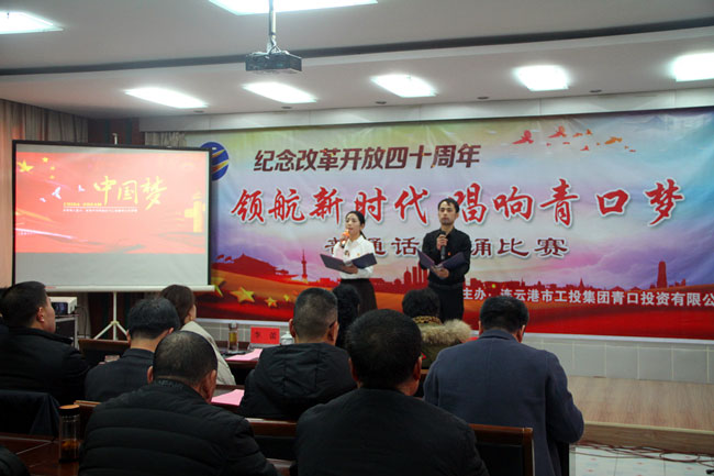 為了紀(jì)念改革開放四十周年,引導(dǎo)和激勵(lì)廣大職工圍繞 “高質(zhì)發(fā)展、后發(fā)先至”主題主線,為建設(shè)“強(qiáng)富美高”新青口、開啟青口發(fā)展新征程貢獻(xiàn)力量。12月11日下午,青口公司黨委隆重舉行“領(lǐng)航新時(shí)代 唱響青口夢”紀(jì)念改革開放40周年普通話朗誦比賽?;顒?dòng)邀請到連云港市語委辦副主任、詩朗誦藝術(shù)家協(xié)會副主席朱衛(wèi)文,國家級普通話測試員、市朗誦藝術(shù)家協(xié)會副秘書長李蕾、主任播音員、市朗誦藝術(shù)家協(xié)會副主席朱平擔(dān)任評委。公司領(lǐng)導(dǎo)班子 及 全體管理人員參加活動(dòng)