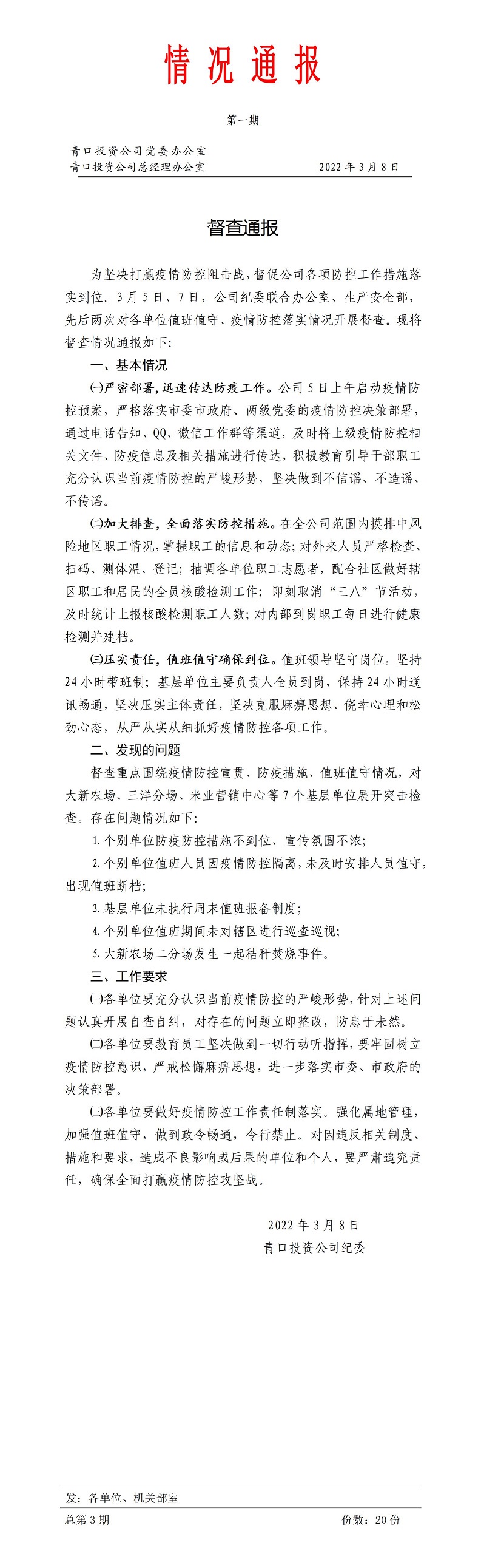 情況通報(bào)1期 疫情防控落實(shí)情況的督查通報(bào)