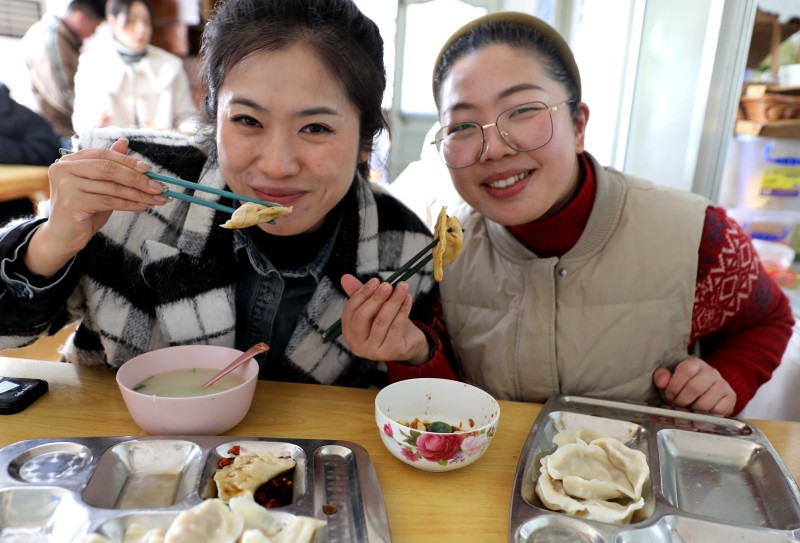 ? ? ? ?活動現場,大家有說有笑,默契配合,有的揉面團、有的拌餃餡、有的搟面皮、有的包餃子,大家互相切磋著包餃子的技巧,好不熱鬧,包出來的餃子也是形態(tài)各異,有元寶狀、小船狀、三角狀,還有獨具特色的花邊餃,女職工們紛紛拿著自己的勞動“成果”,擺在手心互相比較著餃子的形狀,隨著一雙雙靈巧的小手來回舞動著,在一片喜慶、溫馨的氛圍中,一個個口味不一的餃子就展現在大家面前。當一盤盤熱氣騰騰的餃子端上桌,食堂瞬間香氣四溢,吃著自己親手包的餃子,每個人的臉上無不洋溢著滿足、幸福的笑容。