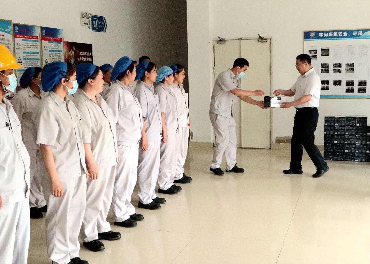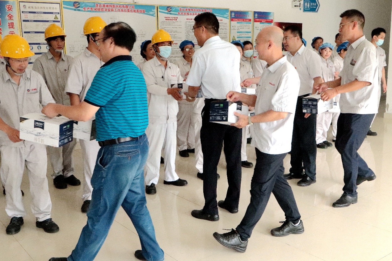 7月28日上午,集團(tuán)公司黨委副書記戴鴻鳴、工會主席劉承志一行到公司慰問生產(chǎn)一線員工,為生產(chǎn)一線員工送來牛奶、綠豆、白糖、大米等防暑降溫慰問品。公司董事長張斌、總經(jīng)理韓立新等領(lǐng)導(dǎo)陪同。
