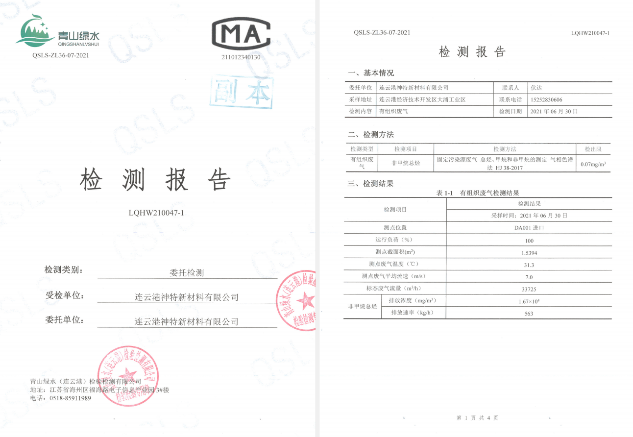 神特公司檢測報告公示