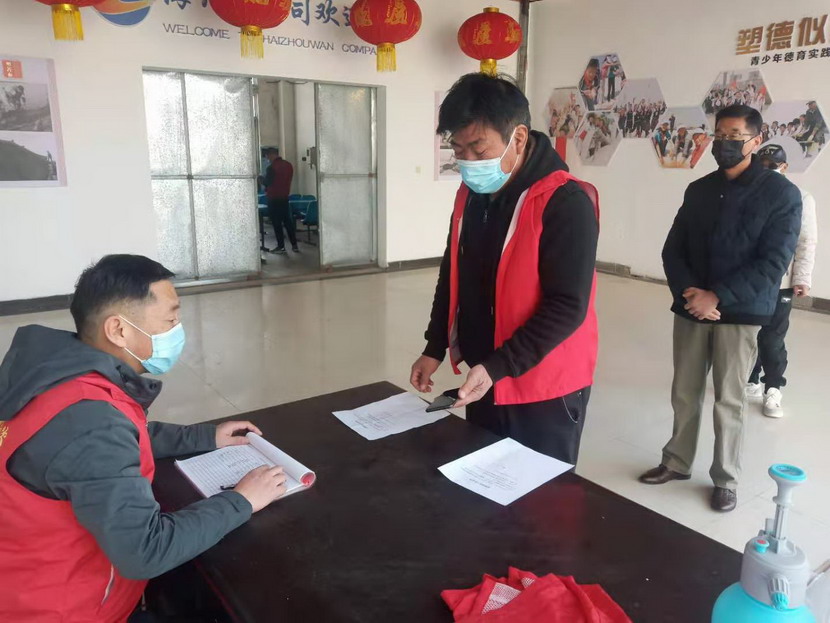 設(shè)置黨員先鋒崗,筑牢防疫堡壘。在這疫情防控緊要關(guān)頭,海州灣黨支部廣大黨員挺身上前、沖鋒在前,全力以赴、嚴(yán)防死守。分別在海濱、先鋒、公司辦公區(qū)以及兩個(gè)鈣液發(fā)放點(diǎn)分別設(shè)置黨員先鋒崗,負(fù)責(zé)來訪人員體溫登記,查看核酸檢測證明、蘇康碼以及行程碼,并宣傳疫情防控政策、防控措施和科普知識,堅(jiān)持把黨旗樹起來、黨員身份亮出來,自覺投入到疫情防控各項(xiàng)工作中,全面落實(shí)聯(lián)防聯(lián)控措施,構(gòu)筑群防群控的嚴(yán)密防線,堅(jiān)決打贏這場疫情防控阻擊戰(zhàn)。