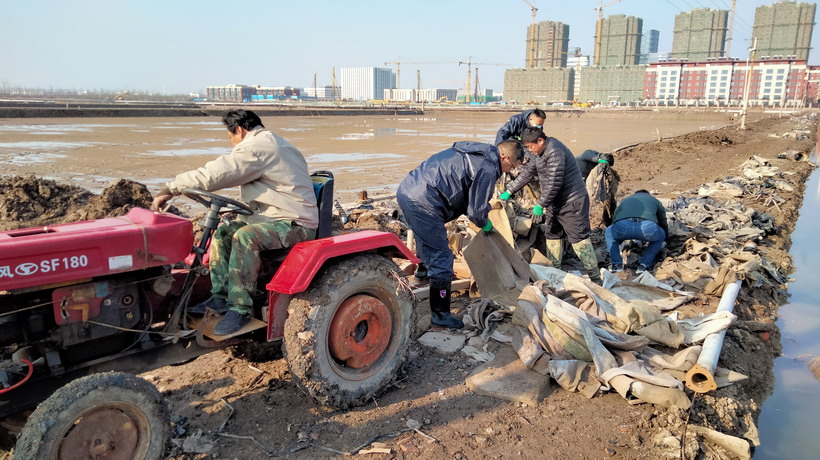 眼下,正值投資公司上下如火如荼的開展“開局就是決戰(zhàn),起步就是沖刺”主題黨日之際,11日下午,資源管理分公司、金臺(tái)留守處、養(yǎng)殖管理辦公室三部門聯(lián)合到海州灣公司西灘制鹽作業(yè)區(qū)協(xié)助海州灣公司開展冬準(zhǔn)活動(dòng)之灘場文明化專項(xiàng)行動(dòng)?;顒?dòng)期間,無論干部還是職工都沖鋒在前,踩著雨后的泥濘不堪的道路,拖著破損臟亂的土工布和塑料布,不怕臟不怕累一張一塊的往車上拖運(yùn),一個(gè)下午時(shí)間,鹽田間的垃圾都沒有了,道路和池格都變整潔了,各兄弟單位的干部職工們帶著喜悅結(jié)束了本次“戰(zhàn)斗”。