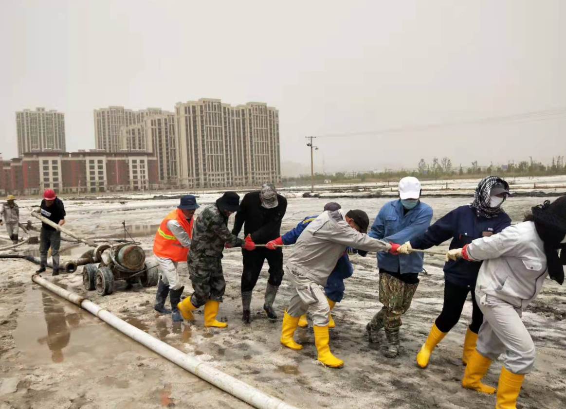 “百日會戰(zhàn)”完美收官,大家以黨史學習教育為精神動力,弘揚“四再”創(chuàng)業(yè)精神,淬煉“四拼”工作作風,展現出強有力的政治責任感和歷史使命感,在廣袤的鹽田上,用勤勞的汗水譜寫“四個最”的美麗華章。開局最早,搶抓春景好時光,開創(chuàng)歷史最早記錄,“破天荒”地從大年初十開啟扒鹽。戰(zhàn)線最長,以西灘機械扒鹽為起點,歷經東灘、大八組、海濱人工扒鹽,二組、西灘雙線齊上、火力全開,至東灘機械扒鹽落下帷幕,實現了“漫漫長征路”的圓滿勝利。歷時最久,整整百日一舉打破扒鹽歷時最久記錄,從冷冽刺骨的寒風,到烈日當空的火熱,從臃腫的棉襖,到清涼的短袖。困難最多,面對天時不利的氣象條件,面對著堿廠關停的嚴峻局勢,面對著環(huán)保安全的巨大壓力,面對著人手不足的現實問題,團結一心,攻堅克難,迎接挑戰(zhàn),眾志成城筑鹽山,“暑霜春雪”顆粒盡歸倉。