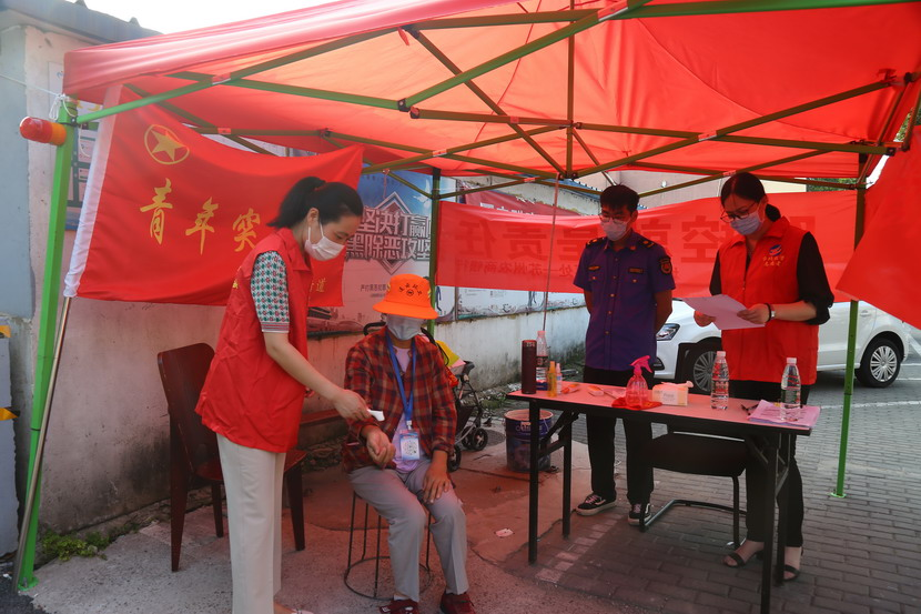 機(jī)關(guān)黨支部與東園社區(qū)攜手深入小區(qū)、各路段開展疫情防控工作,志愿者們協(xié)助社區(qū)完成檢查健康碼行程碼、測量體溫、宣傳疫情防控規(guī)定等工作,充分發(fā)揮黨員先鋒作用,展示黨員良好形象。