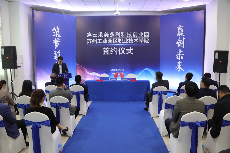 5月11日,投資公司美多利科創(chuàng)園與蘇州工業(yè)園區(qū)職業(yè)技術(shù)學(xué)?!爱a(chǎn)教融合”項(xiàng)目簽約儀式在“??汀北妱?chuàng)空間隆重舉辦。開發(fā)區(qū)教育工委委員、社會事業(yè)局教育處處長劉益國等領(lǐng)導(dǎo),蘇州工業(yè)園區(qū)職業(yè)技術(shù)學(xué)院繼續(xù)教育學(xué)院院長魏剛等校方代表,投資公司全體領(lǐng)導(dǎo)班子,美多利公司全體領(lǐng)導(dǎo)班子參加了簽約儀式。