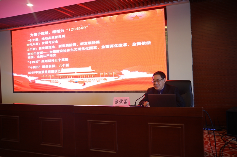 下半場,張校長從一個主題,推動高質(zhì)量發(fā)展;兩件大事,發(fā)展與安全;三個新,新發(fā)展理念、新發(fā)展階段、新發(fā)展格局;新四個全面,全面建設(shè)社會主義現(xiàn)代化國家、全面深化改革、全面依法治國、全面從嚴(yán)治黨;“十四五”規(guī)劃堅(jiān)持五個原則;“十四五”規(guī)劃目標(biāo),六個新;2035年遠(yuǎn)景目標(biāo)建議九項(xiàng)措施等九個方面解讀了全會精神的“新征程 新理念 新格局 新愿景”。