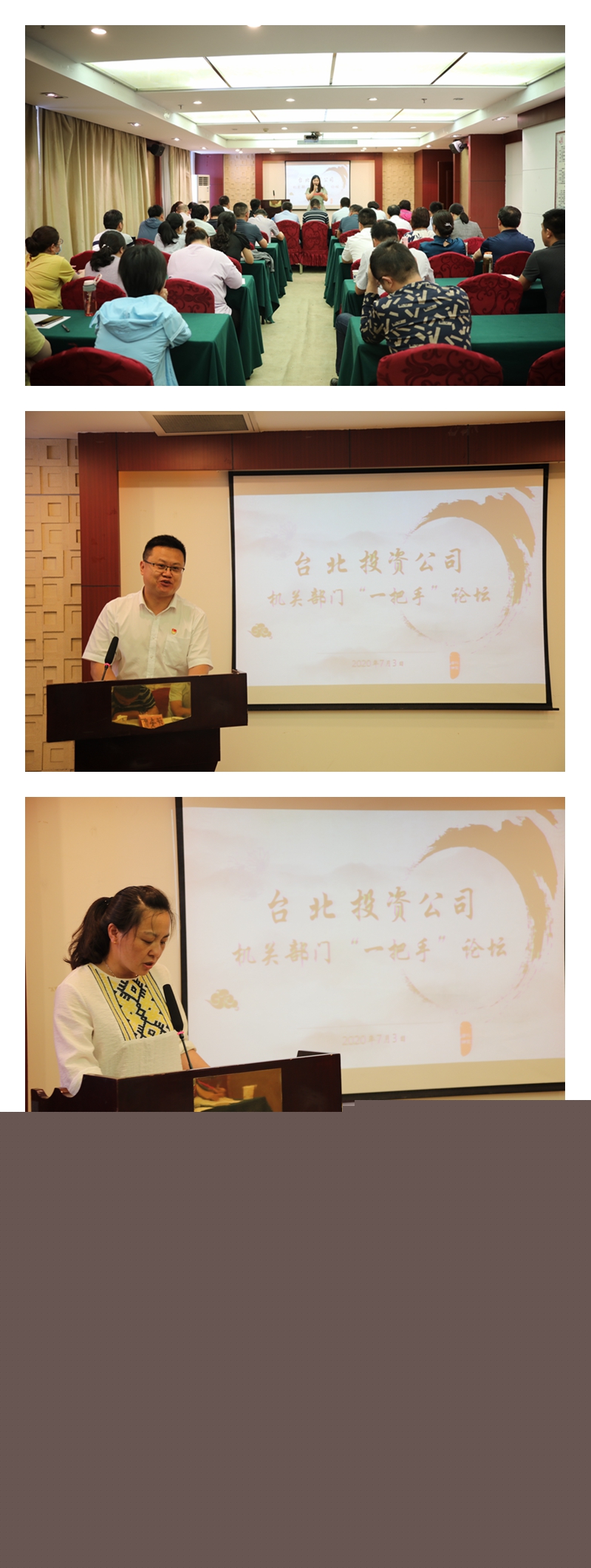 7月3日下午,投資公司在九樓會(huì)議室舉辦臺(tái)北大講壇——部門“一把手”專場(chǎng),來自機(jī)關(guān)部門的八位同志走上講臺(tái),談心得,談想法,談思路,談措施。公司領(lǐng)導(dǎo)、各單位黨政負(fù)責(zé)人、機(jī)關(guān)部門部分人員參加了講壇。本次講壇由各基層單位主要負(fù)責(zé)人作為評(píng)委。
