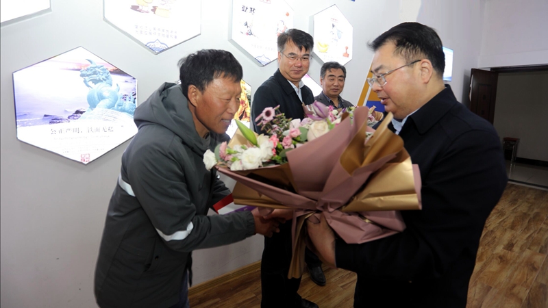 戴鴻鳴副書記還為勞模們送上了鮮花和生日蛋糕卡。