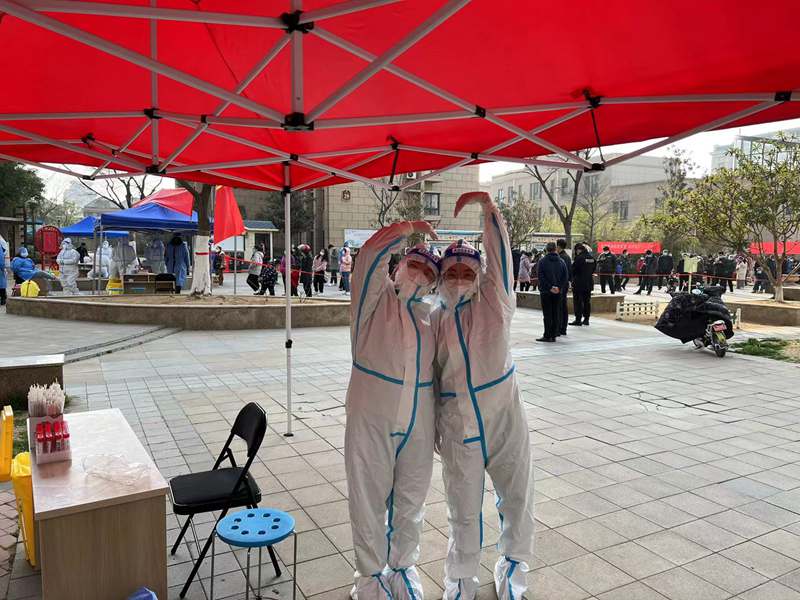 16:00,檢測進(jìn)入尾聲,忙里偷閑和大家聊會(huì)天,身邊的“大白”來自各行各業(yè),疫情防控戰(zhàn)打響,在這危難時(shí)刻,我們一同挺身而出,臨危受命,“逆行”沖往防疫第一線。大家聽從指揮、主動(dòng)擔(dān)當(dāng)?shù)木唧w行動(dòng),充分體現(xiàn)了年輕黨員能打硬仗、敢打硬仗的優(yōu)良品格!