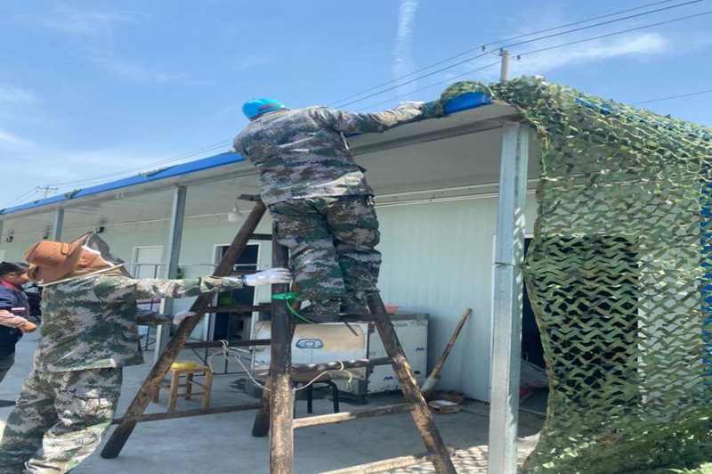 公司從上至下全員上陣,在烈日下穿著悶熱的防護(hù)服埋頭苦干,為中小企業(yè)園臨時用房穿上了“綠衣”也為港城環(huán)境多增添一抹盎然。