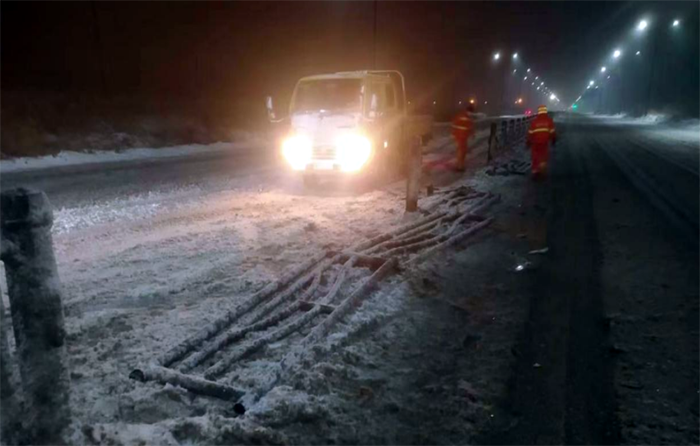 市政分公司根據(jù)公司安排,負責(zé)融雪劑裝卸工作,從23日下午到4日上午,市政分公司累計裝卸融雪劑已達150余噸。該分公司在做好保障融雪劑裝卸作業(yè)的同時,抽調(diào)4名精兵強將,處理因大雪導(dǎo)致的道路交通事故應(yīng)急處置4起,應(yīng)急處理道路護欄11節(jié),約38米,防止交通事故二次發(fā)生。在5日凌晨更是經(jīng)理盧正楊帶領(lǐng)10名黨員先鋒突擊隊,支援重點道路徐新路的融雪劑拋灑作業(yè),僅靠雙手揮著鐵锨,通宵奮戰(zhàn),迎難而上,高質(zhì)高效完成融雪劑拋灑作業(yè)路段。(李濤)